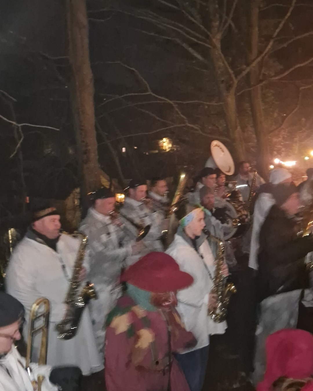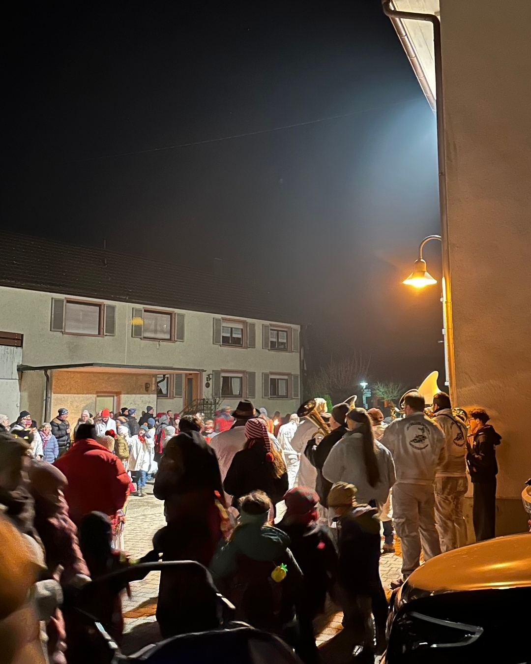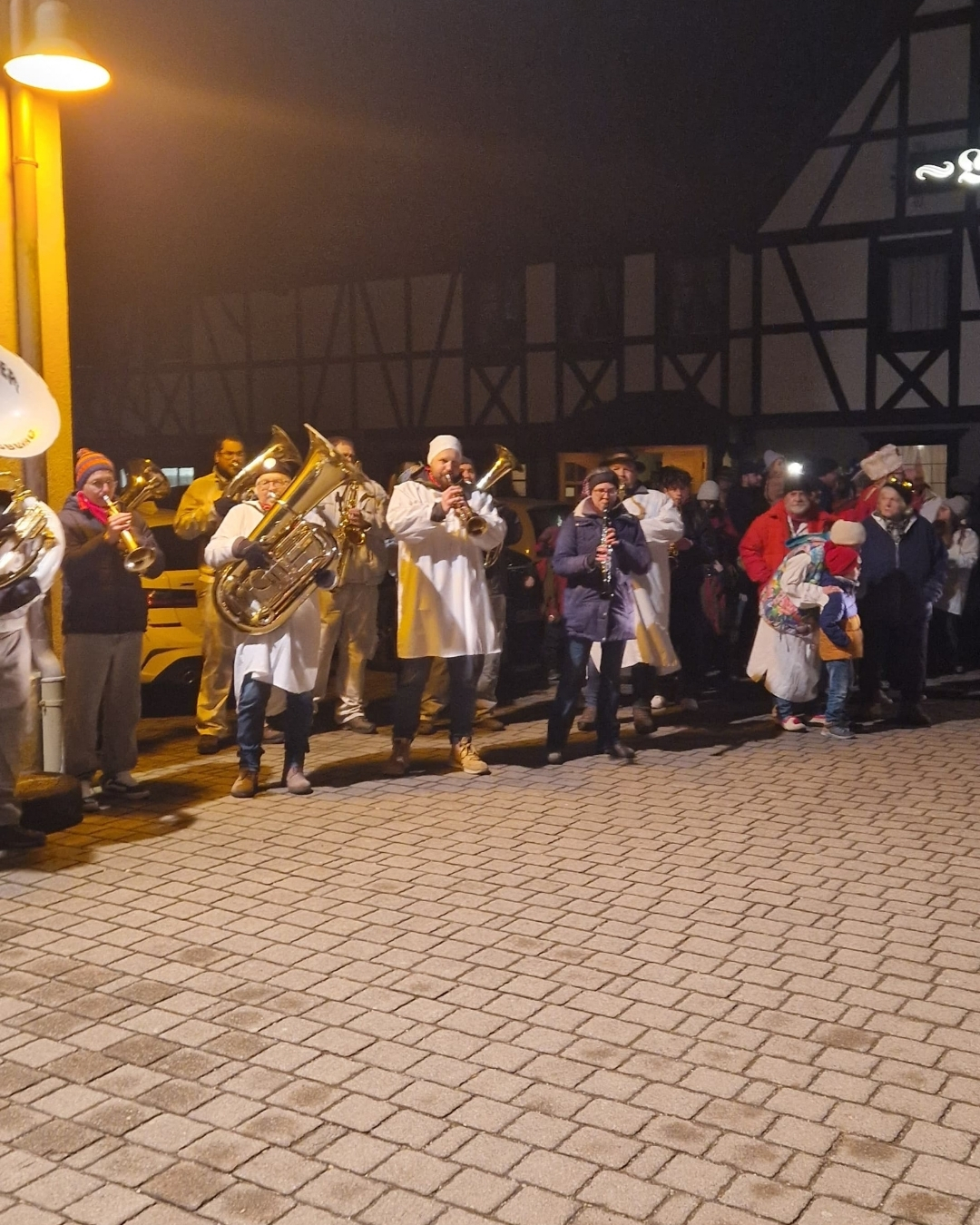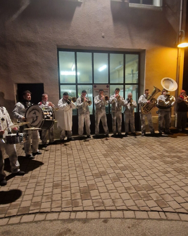 Musikalisch durften wir den Abend gemeinsam mit den Stolleblosern begleiten, als die Räbdroll aus den Reben und die Schräcksli aus dem Stollen gerufen wurden. Anschließend führte der närrische Umzug vom Hintertal bis zum Rathaus, wo der Narrenbaum feierlich gestellt wurde.